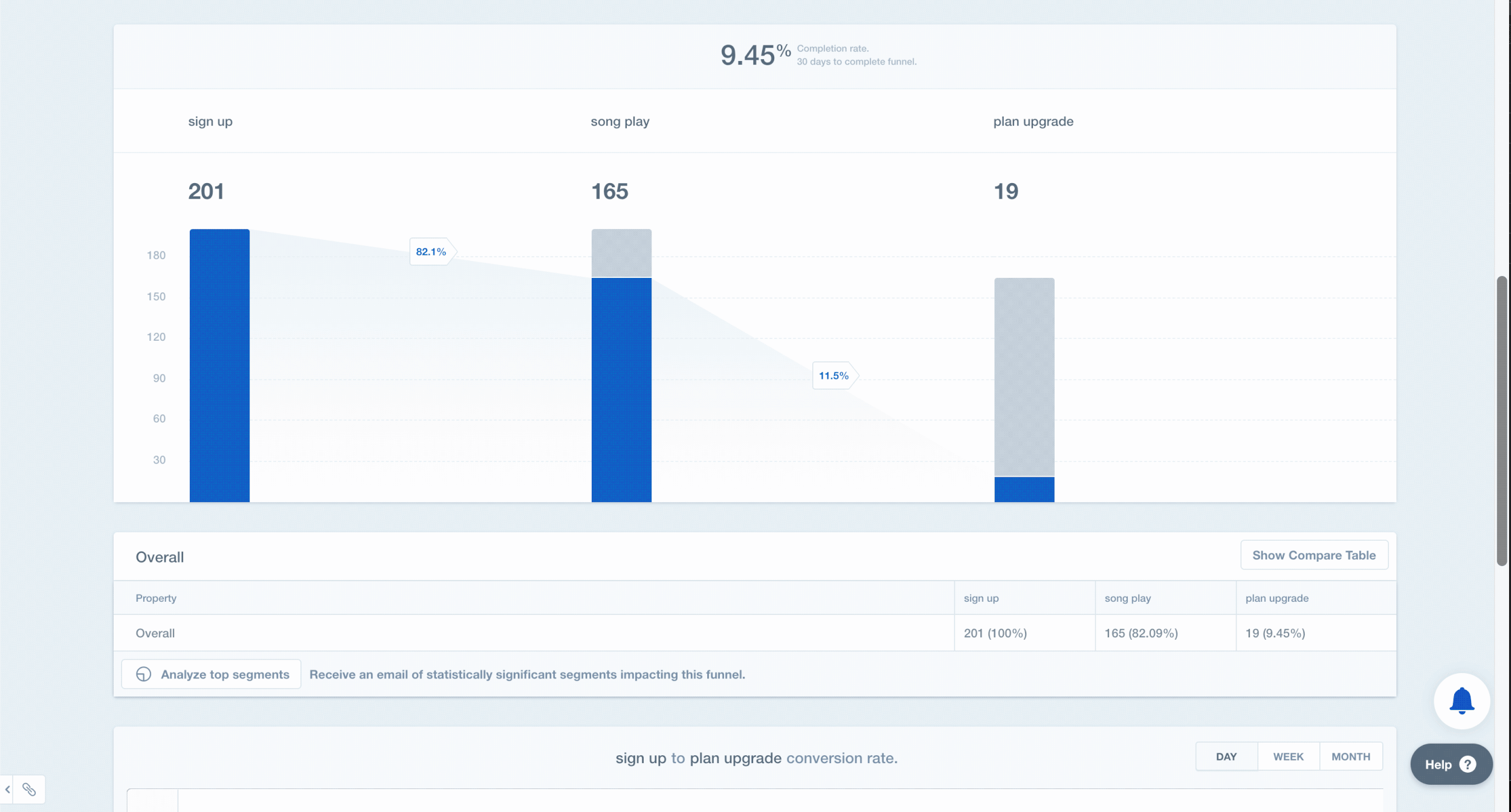 The gif above shows the typical process of analyzing the performance of a funnel. Customer’s goal is to identify the users that dropped off between step 2 and step 3 in the funnel